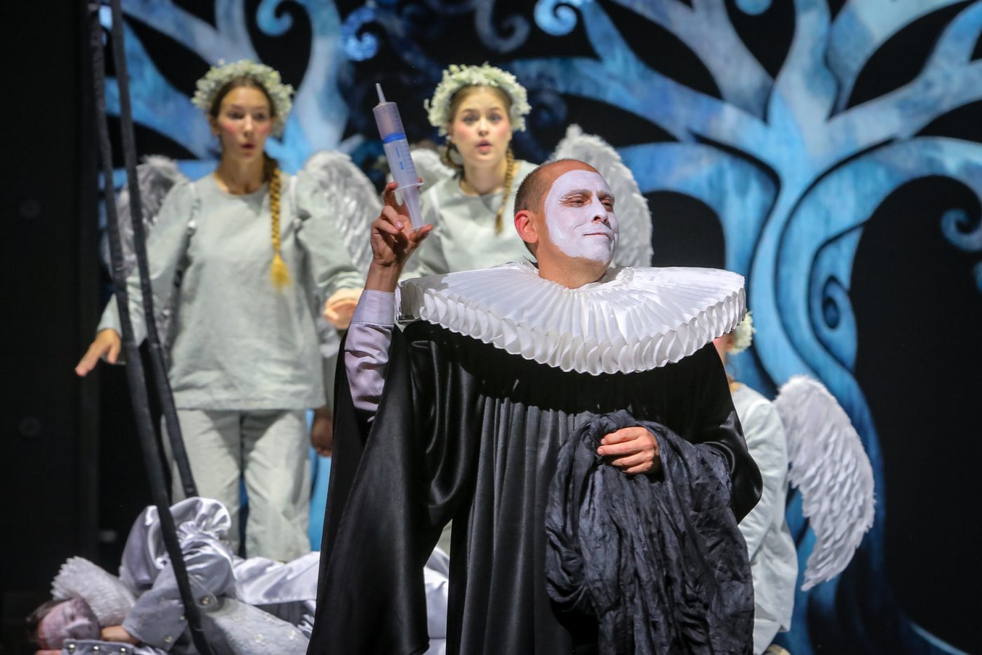Гамлет каждой эпохи таков, какова сама эта эпоха, каков облик ее бунтующего юношества. Книги, которые в разные времена Гамлет держал в руках, менялись, как менялись времена и сами Гамлеты. Сейчас в его руках айфон. Одна из загадок этой пьесы в том, что Гамлеты разных эпох и даже десятилетий могут быть до несовместимости несхожи меж собой (ну что общего между Гамлетом Михаила Чехова и Гамлетом Лоренса Оливье, Гамлетом Григория Козинцева и Михаэля Телльхаймера?). Они сходятся не друг с другом, а с духом своего исторического момента. Но отчаянная боль его — гамлетовская, мучительное и вымученное шутовство — тоже. Конечно, это не трагедия, а постмодернистская трагикомедия, абсурдистский гротеск, трагифарс…