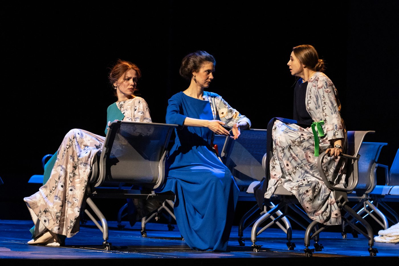 В основе театра Чехова лежит одна неизменная история о смертельности иллюзии, зависимости от нее и, как следствие этого, – жизнь, отложенная на потом, и люди, которым всего не хватает. Все вызовы, брошенные этим людям Жизнью, они воспринимают как боль, с детской беспомощностью и взрослой усталостью. Эта тема отложенной жизни, ожидания счастливого завтра поддержана и сценографически. Свет в спектакле как под стеклянной крышей вокзала. Все видны, а выделить некого…